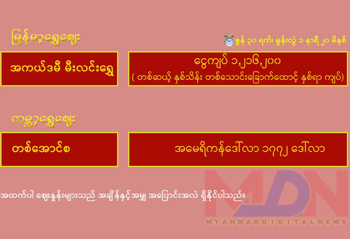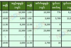 ဇွန် ၃၀ ရက် မွန်းလွဲပိုင်းရန်ကုန်စတော့ အိတ်ချိန်းရှယ်ယာ ဈေးနှုန်းများ