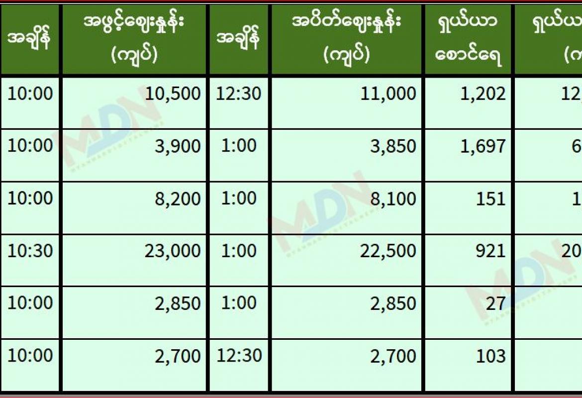 ဇွန် ၂၉ ရက် ရန်ကုန်စတော့ အိတ်ချိန်းရှယ်ယာ အဖွင့်ဈေးနှုန်းများ