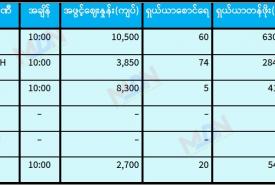 ဇွန် ၂၆ ရက် ရန်ကုန်စတော့ အိတ်ချိန်းရှယ်ယာ အဖွင့်ဈေးနှုန်းများ