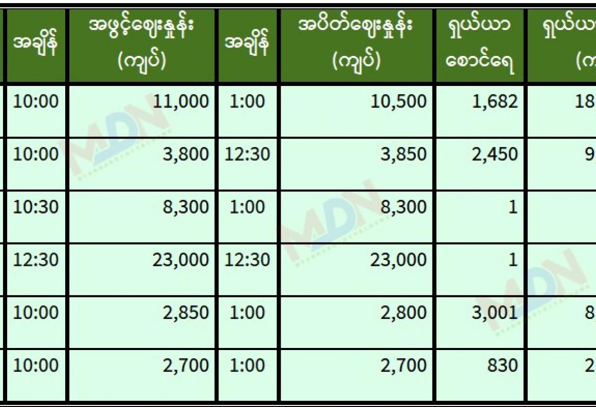 ဇွန် ၁၉ ရက် ရန်ကုန်စတော့ အိတ်ချိန်းရှယ်ယာ အဖွင့်ဈေးနှုန်းများ