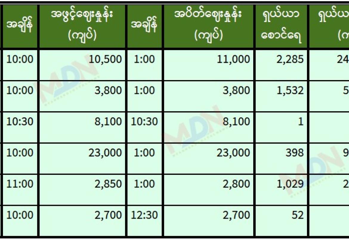 ဇွန် ၁၈ ရက် ရန်ကုန်စတော့ အိတ်ချိန်းရှယ်ယာ အဖွင့်ဈေးနှုန်းများ