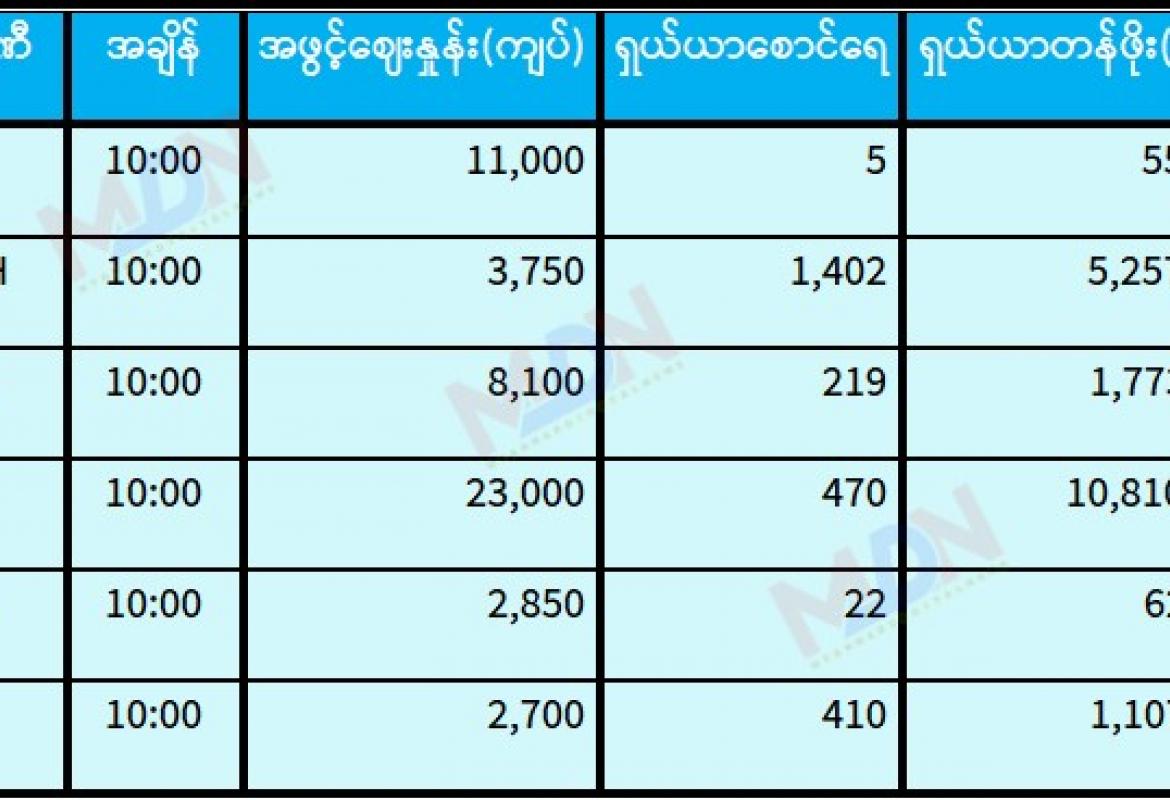 ဇွန် ၁၇ ရက် ရန်ကုန်စတော့ အိတ်ချိန်းရှယ်ယာ အဖွင့်ဈေးနှုန်းများ