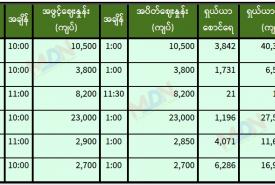 ဇွန် ၁၆ ရက် မွန်းလွဲပိုင်းရန်ကုန်စတော့ အိတ်ချိန်းရှယ်ယာ ဈေးနှုန်းများ