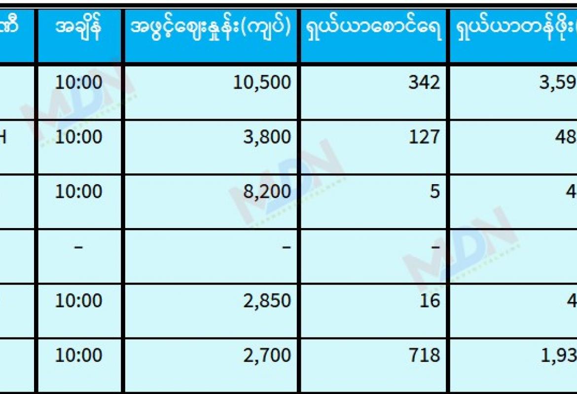မေ ၂၉ ရက် ရန်ကုန်စတော့ အိတ်ချိန်းရှယ်ယာ အဖွင့်ဈေးနှုန်းများ