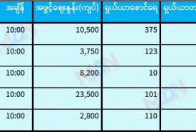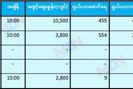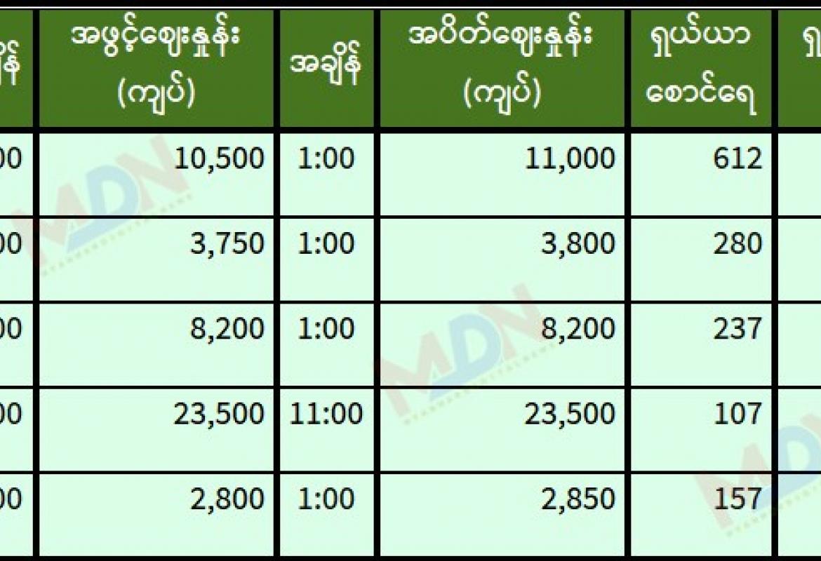 မေ ၂၆ ရက် ရန်ကုန်စတော့ အိတ်ချိန်းရှယ်ယာ အဖွင့်ဈေးနှုန်းများ