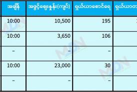 မေ ၁၄ ရက် ရန်ကုန်စတော့ အိတ်ချိန်းရှယ်ယာ အဖွင့်ဈေးနှုန်းများ