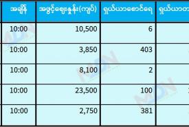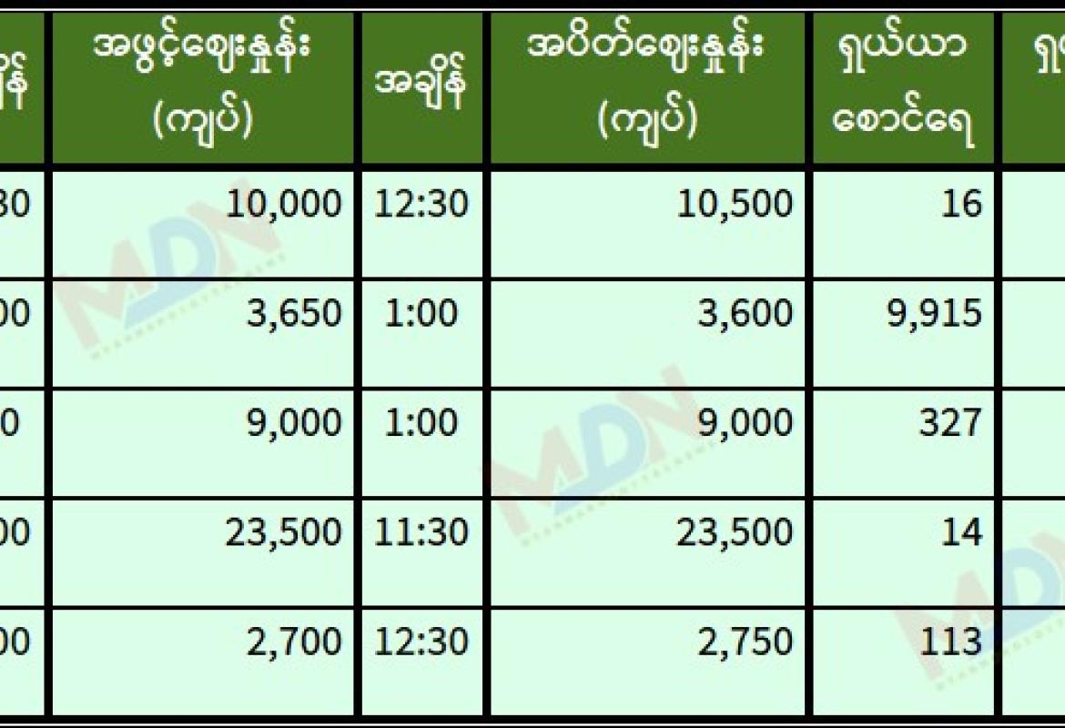 မေ ၇ ရက် ရန်ကုန်စတော့ အိတ်ချိန်းရှယ်ယာ အဖွင့်ဈေးနှုန်းများ