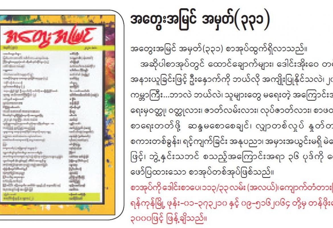 အတွေးအမြင် အမှတ်(၃၃၁) စာအုပ်ထွက်ရှိ