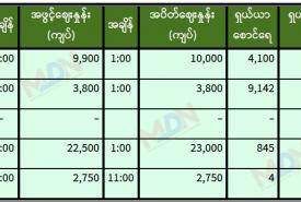မေ ၅ ရက် ရန်ကုန်စတော့ အိတ်ချိန်းရှယ်ယာ အဖွင့်ဈေးနှုန်းများ