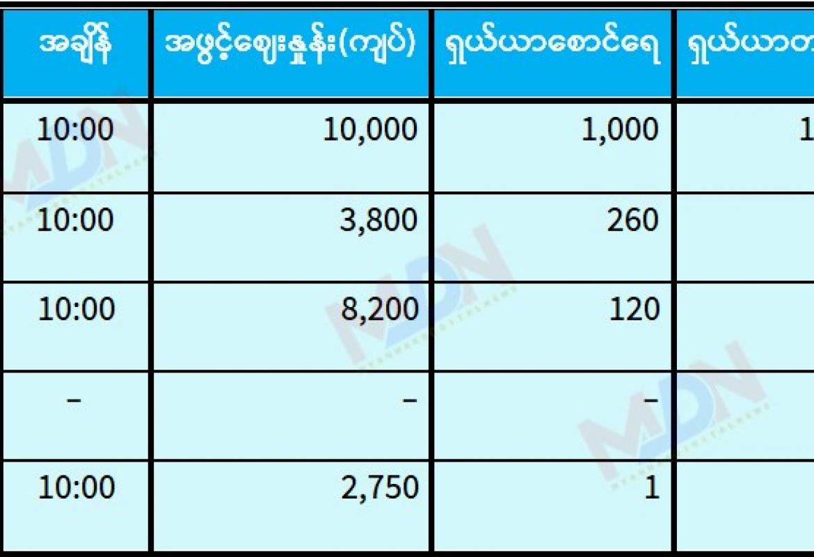 ဧပြီ ၃၀ ရက် ရန်ကုန်စတော့ အိတ်ချိန်းရှယ်ယာ အဖွင့်ဈေးနှုန်းများ