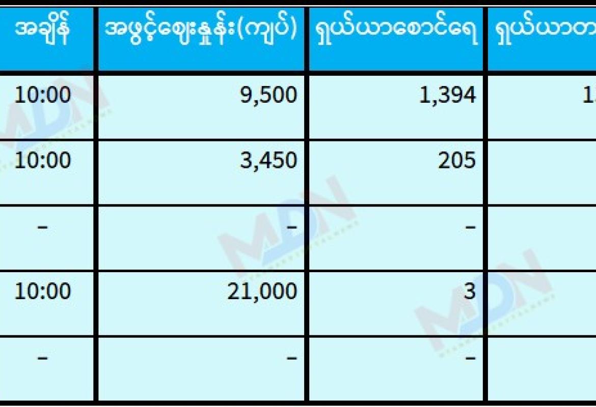 ဧပြီ ၃ ရက် ရန်ကုန်စတော့ အိတ်ချိန်းရှယ်ယာ အဖွင့်ဈေးနှုန်းများ