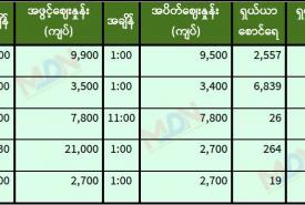 ဧပြီ ၂ ရက် မွန်းလွဲပိုင်းရန်ကုန်စတော့ အိတ်ချိန်းရှယ်ယာ ဈေးနှုန်းများ