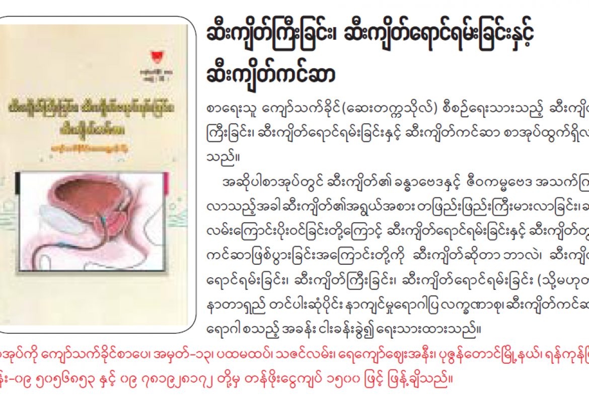 ဆီးကျိတ်ကြီးခြင်း၊ ဆီးကျိတ်ရောင်ရမ်းခြင်းနှင့် ဆီးကျိတ်ကင်ဆာ စာအုပ်ထွက်ရှိ