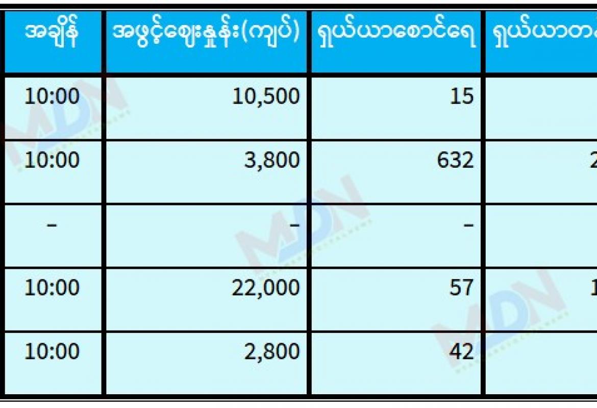 ရန်ကုန်စတော့ အိတ်ချိန်းရှယ်ယာ ယနေ့ အဖွင့်ဈေးနှုန်းများ