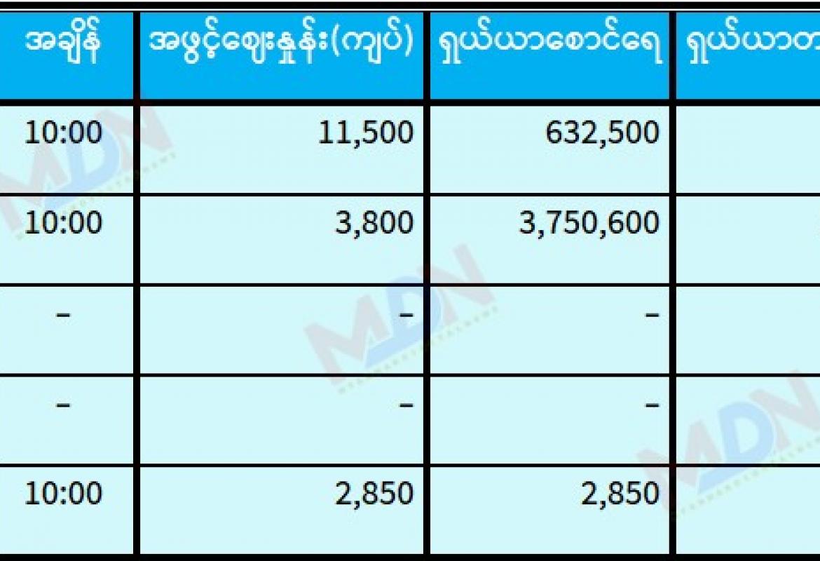 ရန်ကုန်စတော့ အိတ်ချိန်းရှယ်ယာ ယနေ့ အဖွင့်ဈေးနှုန်းများ