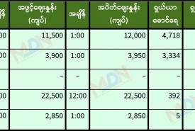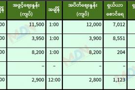 မွန်းလွဲပိုင်းရန်ကုန်စတော့ အိတ်ချိန်းရှယ်ယာ ဈေးနှုန်းများ
