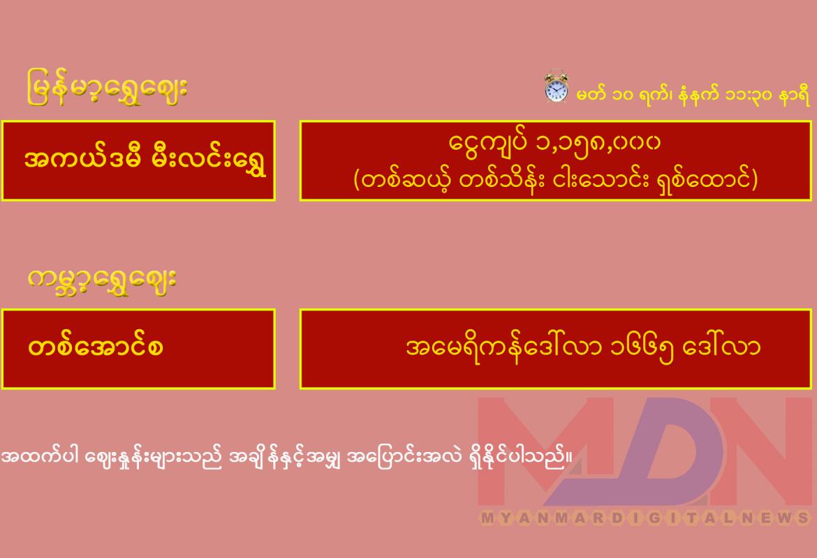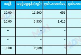ရန်ကုန်စတော့ အိတ်ချိန်းရှယ်ယာ ယနေ့ အဖွင့်ဈေးနှုန်းများ