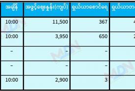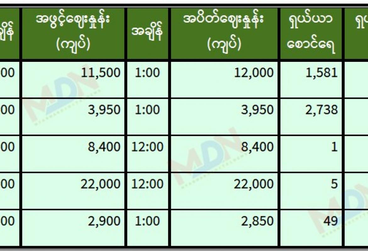 ရန်ကုန်စတော့ အိတ်ချိန်းရှယ်ယာ ယနေ့ အဖွင့်ဈေးနှုန်းများ