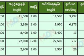 မွန်းလွဲပိုင်းရန်ကုန်စတော့ အိတ်ချိန်းရှယ်ယာ ဈေးနှုန်းများ