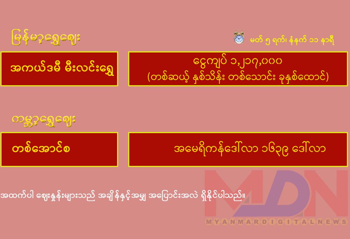 ရန်ကုန်စတော့ အိတ်ချိန်းရှယ်ယာ ယနေ့ အဖွင့်ဈေးနှုန်းများ
