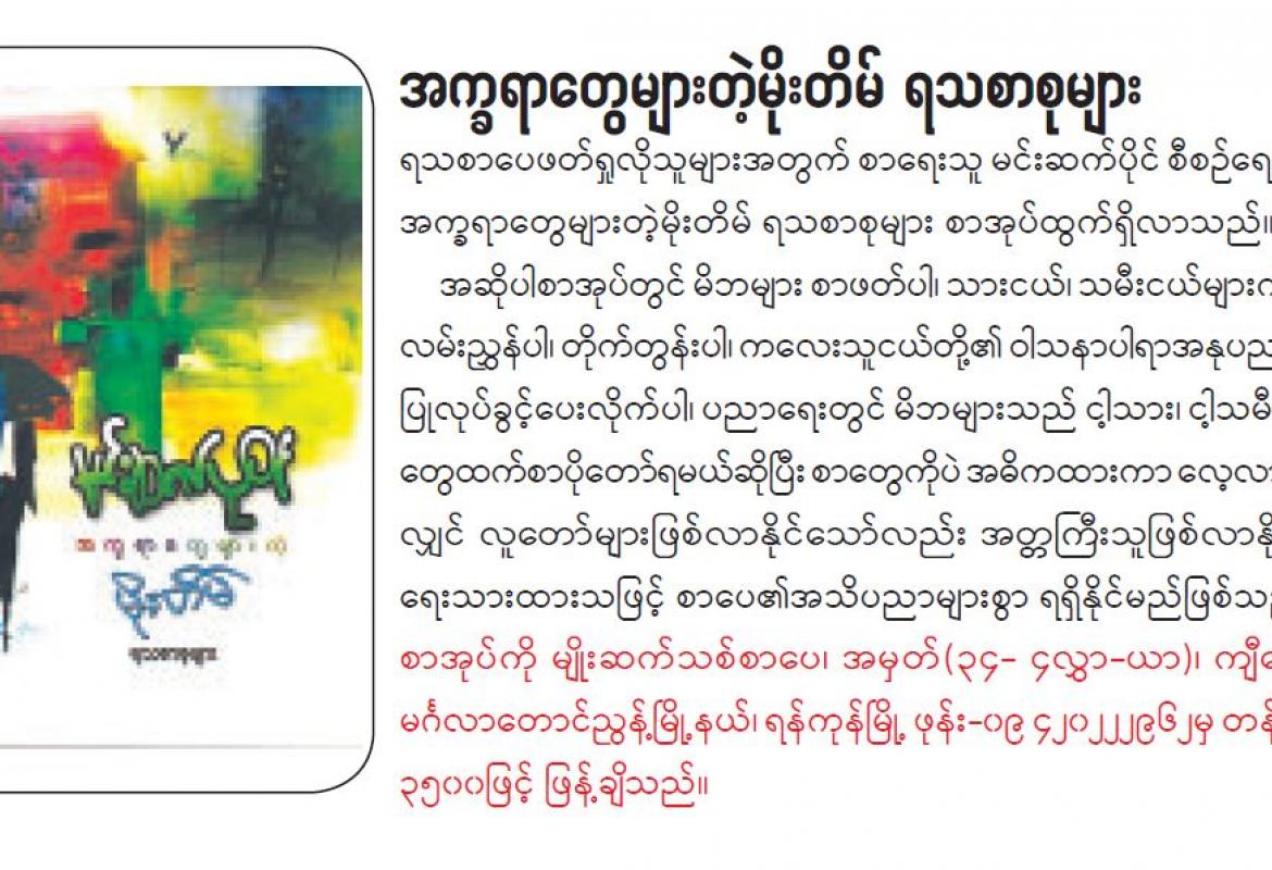 အက္ခရာတွေများတဲ့မိုးတိမ် ရသစာစုများ စာအုပ်ထွက်ရှိ