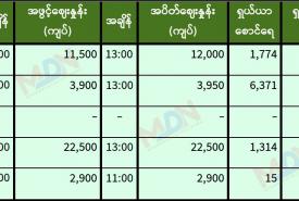 မွန်းလွဲပိုင်းရန်ကုန်စတော့ အိတ်ချိန်းရှယ်ယာ ဈေးနှုန်းများ