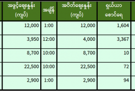မွန်းလွဲပိုင်းရန်ကုန်စတော့ အိတ်ချိန်းရှယ်ယာ ဈေးနှုန်းများ