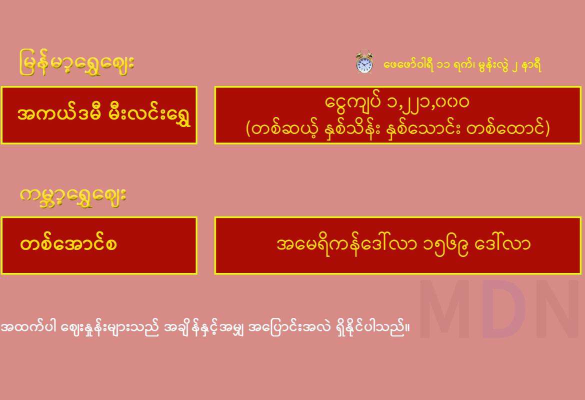 မွန်းလွဲပိုင်းရန်ကုန်စတော့ အိတ်ချိန်းရှယ်ယာ ဈေးနှုန်းများ