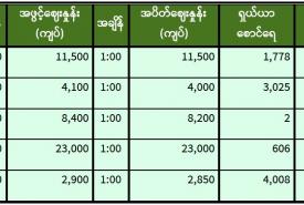 ရန်ကုန်စတော့ အိတ်ချိန်းရှယ်ယာ ယနေ့ အဖွင့်ဈေးနှုန်းများ