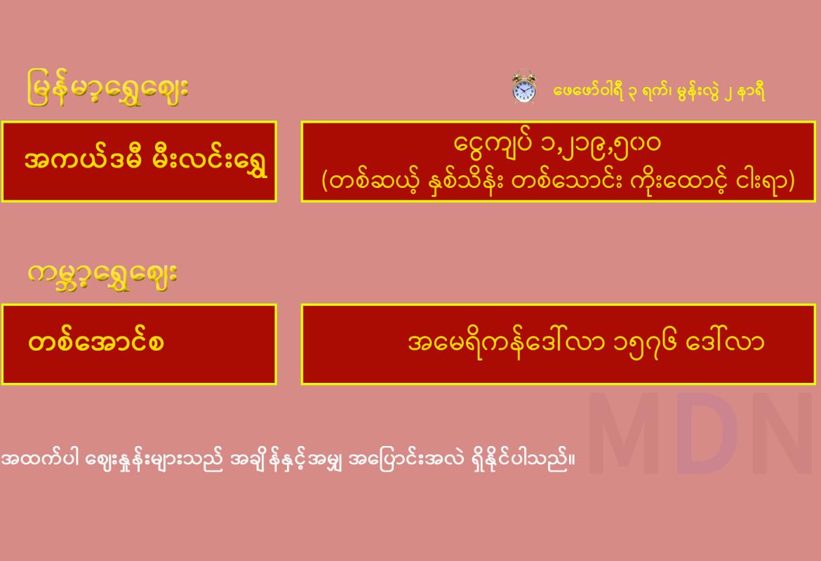 မွန်းလွဲပိုင်းရန်ကုန်စတော့ အိတ်ချိန်းရှယ်ယာ ဈေးနှုန်းများ