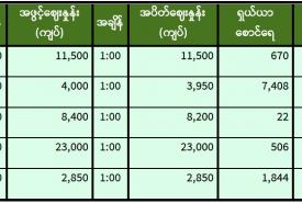 ရန်ကုန်စတော့ အိတ်ချိန်းရှယ်ယာ ယနေ့ အဖွင့်ဈေးနှုန်းများ