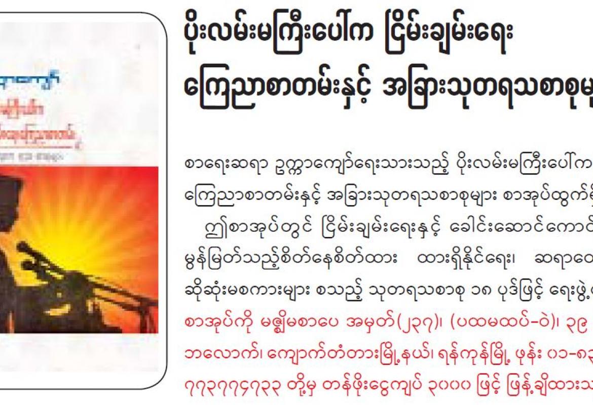 ပိုးလမ်းမကြီးပေါ်က ငြိမ်းချမ်းရေး ကြေညာစာတမ်းနှင့် အခြားသုတရသစာစုများ စာအုပ်ထွက်ရှိ