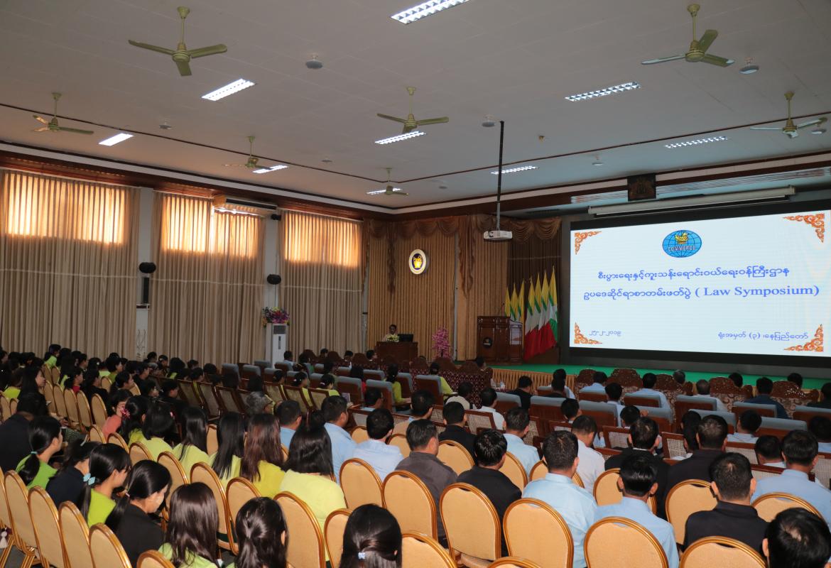 ပြည်ထောင်စုဝန်ကြီး ဒေါက်တာသန်းမြင့် ဥပဒေဆိုင်ရာစာတမ်းဖတ်ပွဲ (Law Symposium) အခမ်းအနား တက်ရောက်အမှာစကားပြောကြား