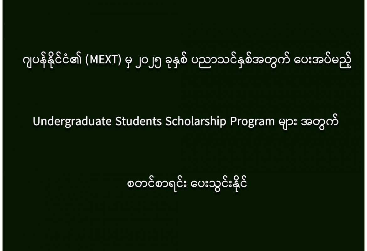 ဂျပန်နိုင်ငံ၏ (MEXT) မှ ၂၀၂၅ ခုနှစ် ပညာသင်နှစ်အတွက် ပေးအပ်မည့် Undergraduate Students Scholarship Program များ အတွက် စတင်စာရင်း ပေးသွင်းနိုင်