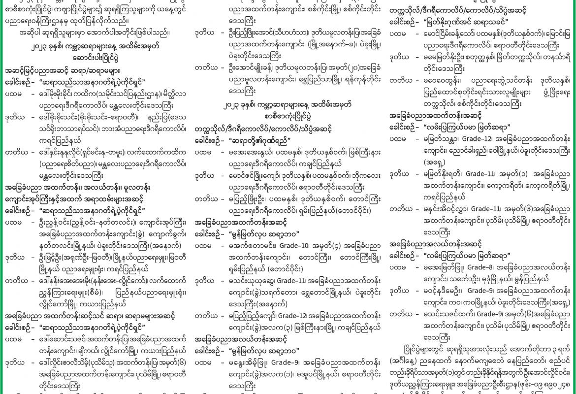 ပညာရေးဝန်ကြီးဌာန အခြေခံပညာဦးစီးဌာန အလယ်တန်းဆင့် (Grade 9) ပြီးမြောက်အောင်မြင်သော ကျောင်းသား၊ ကျောင်းသူများ ပညာသင်ယူနိုင်မည့်အခွင့်အလမ်းများ