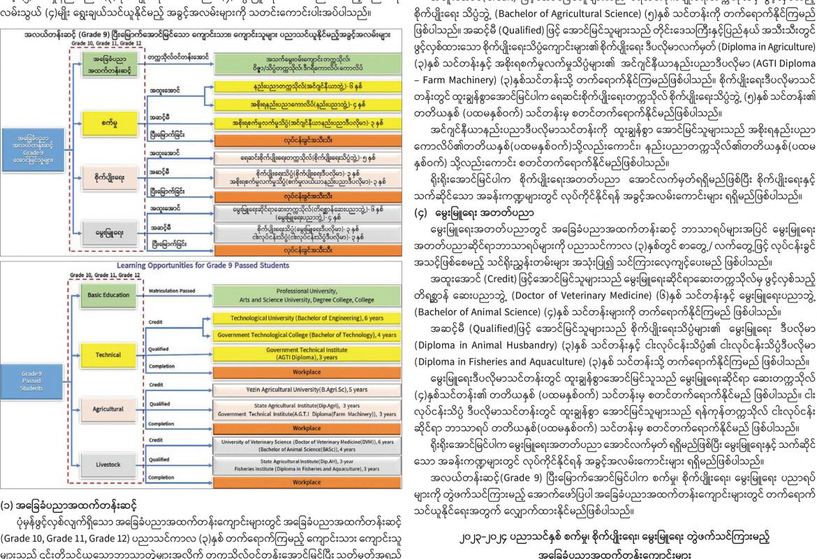 အလယ်တန်းဆင့် (Grade 9) ပြီးမြောက်အောင်မြင်သော ကျောင်းသား ကျောင်းသူများ ပညာသင်ယူနိုင်မည့်အခွင့်အလမ်းများ