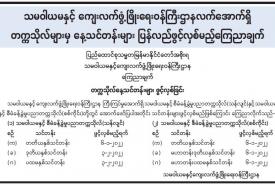 သမဝါယမနှင့် ကျေးလက်ဖွံ့ဖြိုးရေးဝန်ကြီးဌာနလက်အောက်ရှိ တက္ကသိုလ်များမှ နေ့သင်တန်းများ ပြန်လည်ဖွင့်လှစ်မည့်ကြေညာ