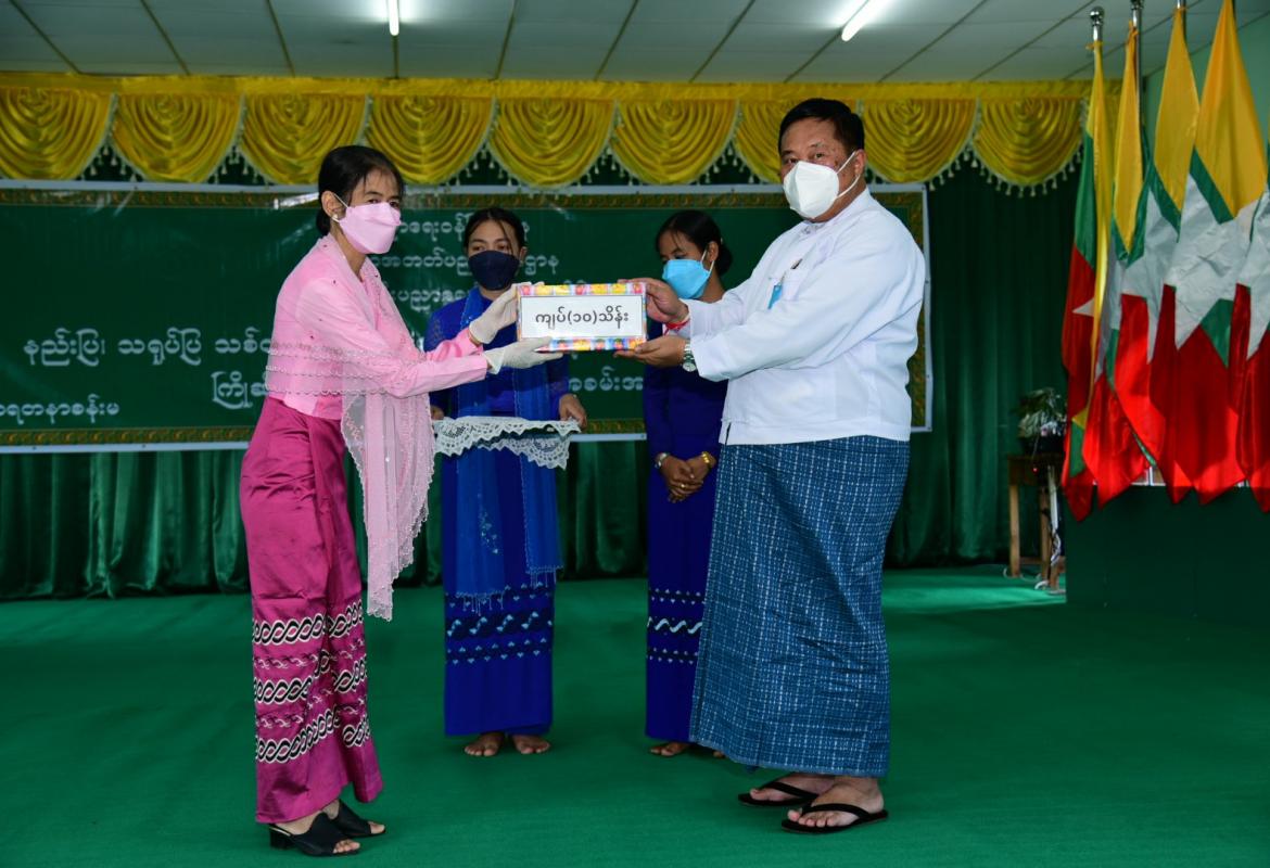 ဝါးခယ်မမြို့နယ်အတွင်းသို့ ယာယီရွှေ့ပြောင်းနေထိုင်သူ ပြည်သူများအား သုံးလစာ ထောက်ပံ့ငွေနှင့် ပစ္စည်းများပေးအပ်
