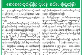 ၂၀၂၅ ခုနှစ်၊ တက္ကသိုလ်ဝင်စာမေးပွဲ အောင်စာရင်းထုတ်ပြန်ခြင်းလုပ်ငန်း အသိပေးကြေညာခြင်း
