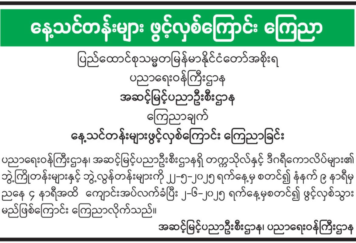 နေ့သင်တန်းများ ဖွင့်လှစ်ကြောင်း ကြေညာ