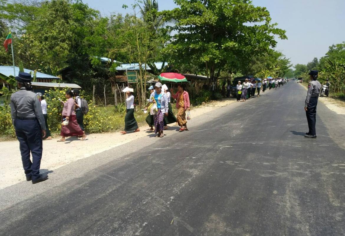 တက္ကသိုလ်ဝန်ထမ်းစာမေးပွဲဖြေဆိုနေစဉ် ခေါင်းမူးရောဂါခံစားလာရသည့် ကျောင်းသူတစ်ဦးအား ရဲတပ်ဖွဲ့ဝင်များပါဝင်သည့် ပူးပေါင်းအဖွဲ့က ကူညီဆောင်ရွက်ပေး