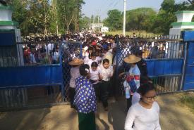ယနေ့နံနက်ပိုင်းမှ စတင်၍ တက္ကသိုလ်ဝင် စာမေးပွဲ ဖြေဆိုမှုများ စတင်လျက်ရှိရာ ရန်ကုန်တိုင်းဒေသကြီး၊ အ.ထ.က(၂) စမ်းချောင်းသို့ စာမေးပွဲဖြေဆိုရန် ကျောင်းလွဲမှား ရောက်ရှိလာသည့် ကျောင်းသားအား .......