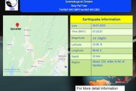 ဖားကန့်မြို့အနီး အင်အားအနည်းငယ်ရှိ မြေငလျင်တစ်ခု လှုပ်ခတ်