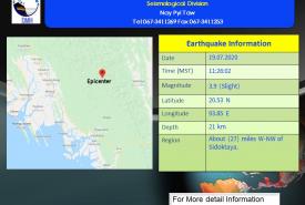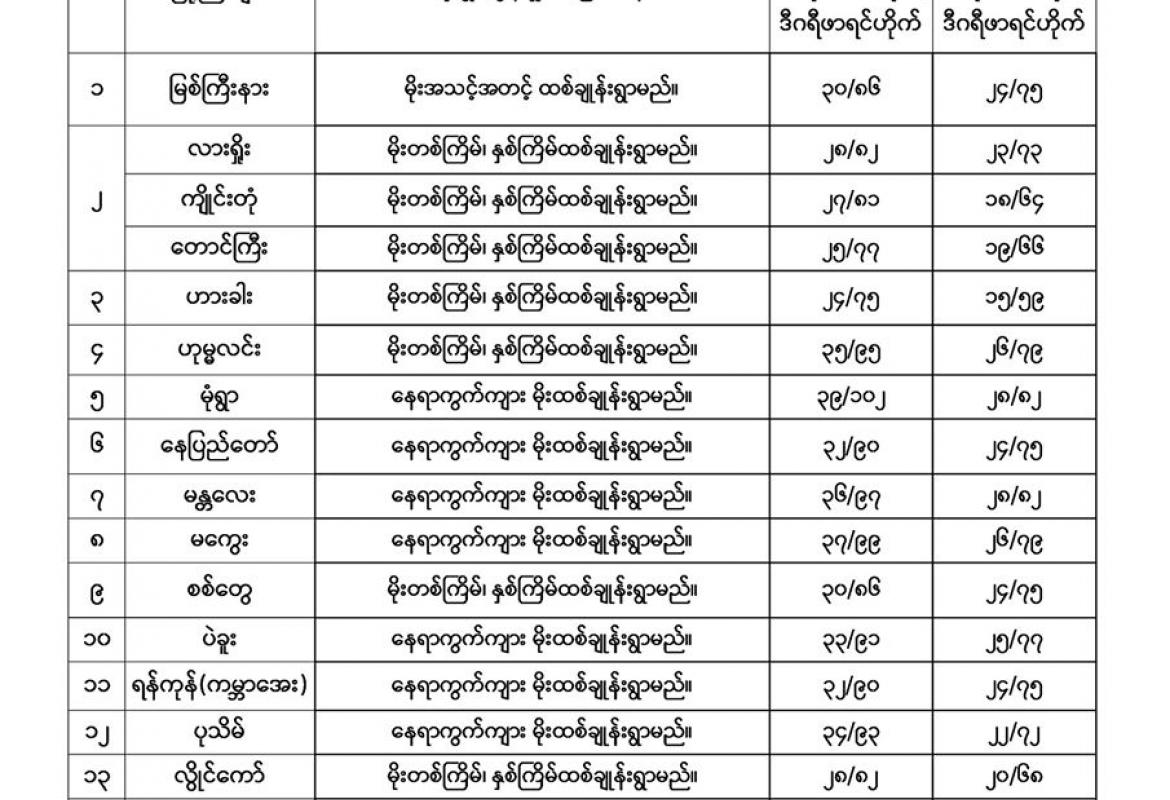 မိုးလေဝသနှင့် ဇလဗေဒညွှန်ကြားမှုဦးစီးဌာနမှ (၁၉.၇.၂၀၂၀) ရက်နေ့ နံနက်(၀၆:၃၀)နာရီအချိန်တွင် တိ