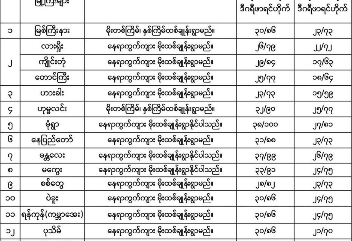 ကချင်ပြည်နယ်၊ ရခိုင်ပြည်နယ်နှင့် မွန်ပြည်နယ်တို့တွင် နေရာကွက်၍ မိုးကြီးနိုင်