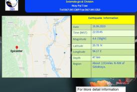 စေတုတ္တရာမြို့၏ မြောက်-အနောက်မြောက်ဘက် (၂၃)မိုင်ခန့်အကွာတွင် အင်အားရစ်(ခ်)တာစကေး (၄ ဒသမ ၄) အဆင့်ရှိ မြေငလျင်တစ်ခုလှုပ်ရှား