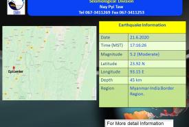 ၅ ဒသမ ၂ အဆင့်ရှိ အင်အားအသင့်အတင့်ရှိသော မြေငလျင်တစ်ခု လှုပ်ရှား