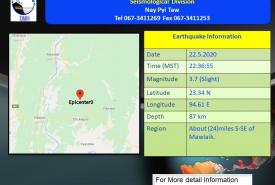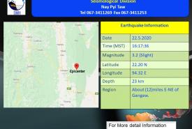 ဂန့်ဂေါမြို့၏ အရှေ့-အရှေ့မြောက်ဘက် (၁၂)မိုင် ခန့်အကွာကို ဗဟိုပြု၍ အင်အားအနည်းငယ်ရှိ မြေငလျင်လှုပ်