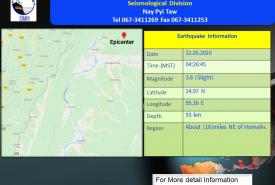 အင်အား ရစ်(ခ်)တာစကေး(၃.၈)အဆင့်ရှိ မြေငလျင်တစ်ခု လှုပ်ခတ်