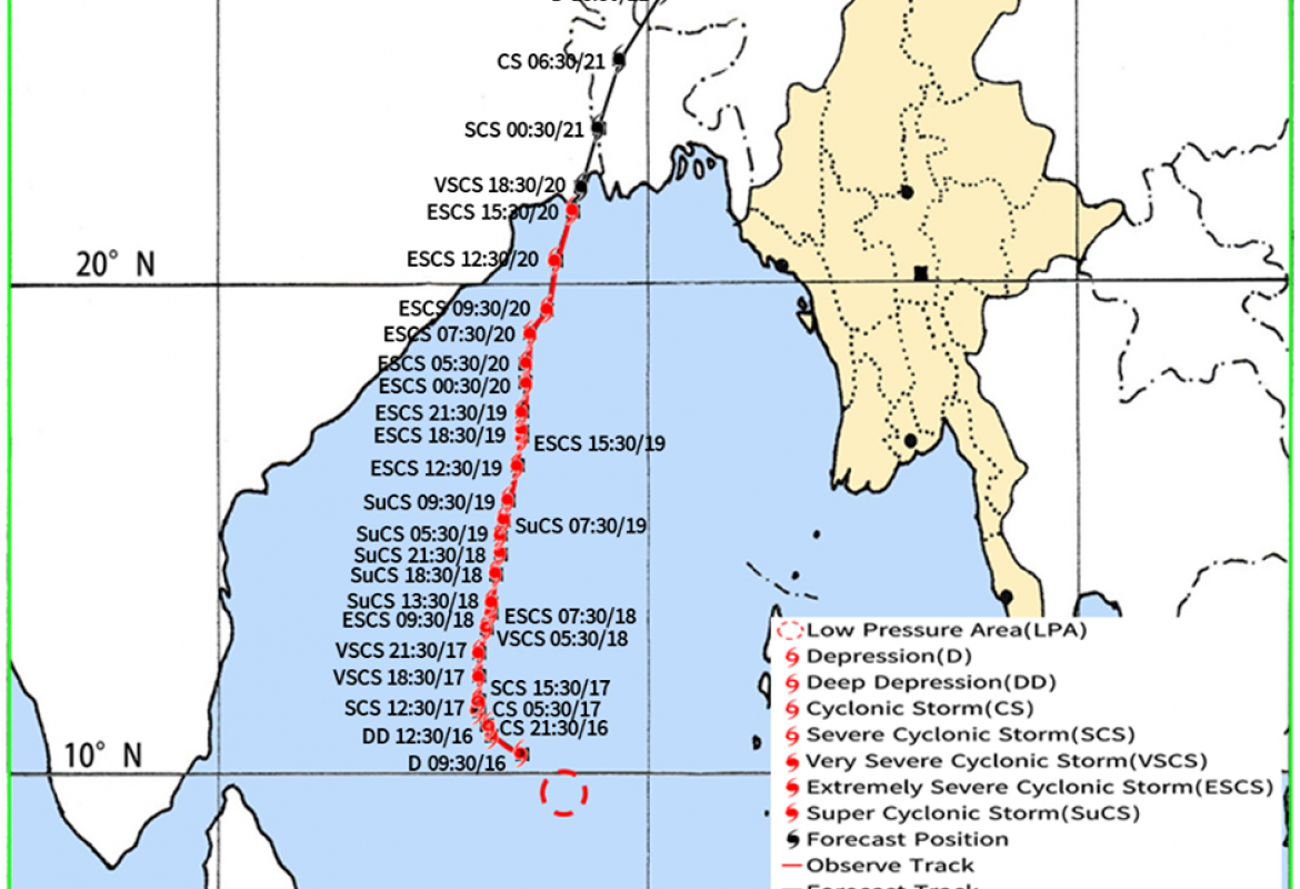 ယနေ့မြန်မာစံတော်ချိန် (၁၅:၃၀)နာရီအချိန် တိုင်းထွာချက်များအရ ဘင်္ဂလားပင်လယ်အော်အနောက် မြောက်ပိုင်းတွင် ဖြစ်ပေါ်နေသော အလွန့်အလွန် အားကောင်းသော ဆိုင်ကလုန်းမုန်တိုင်း (Extremely Severe Cyclonic Storm) အမ်ဖန် (AMPHAN)သည် မြောက်-အရှေ့မြောက်ဘက်သို့ ရွေ့လျားခဲ့ပြီး၊